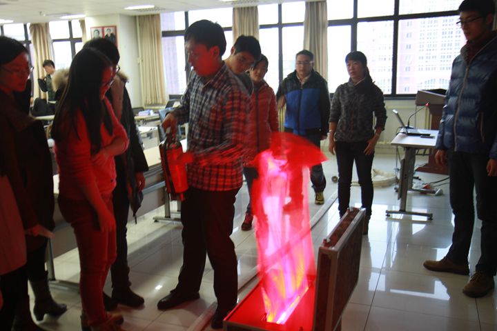 最重要的是,田老师从保卫处带来了灭火器和消防栓的训练模型,向同学们仔细演示了它们的使用方法和注意事项。听完讲解,同学们都跃跃欲试,现场的同学依次练习使用灭火器和消防栓。在实践的过程中,大家收获很大。