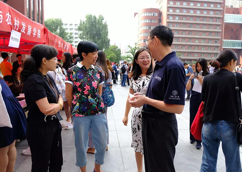 新生报到台前,仔细询问学院招生情况,并与学院老师亲切交谈。学院院长唐忠老师、院党委书记王健老师、院党委副书记康琳老师先后来到学院报到台,与报到的学生及家长们见面交谈,并在学院迎新展板留影。