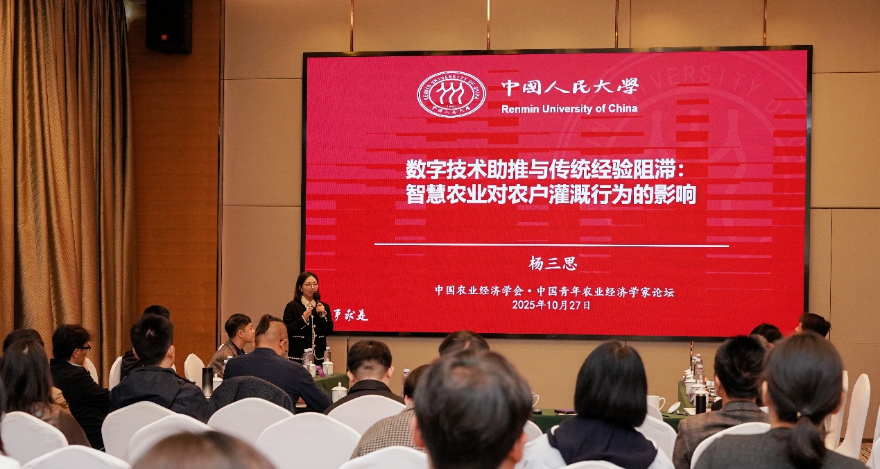副教授杨三思作题为“数字技术助推传统经验阻滞:智慧农业对农户灌溉行为的影响机制”的报告;北京大学现代农学院副教授朱炯作题为“农村要素市场配置及其福利效应的一点思考”的报告。两位青年学者的研究从数字技术赋能农业生产、农村要素市场改革等角度,探讨了“十五五”时期中国特色农业现代化发展的未来方向。