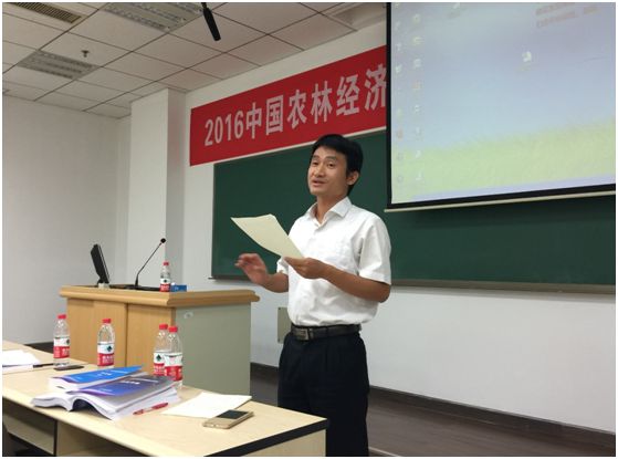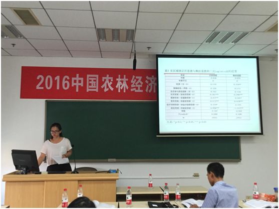 南京农业大学谭鑫硕士做关于“农地流转市场发育对粮食种植比例调整的影响与机制分析”的报告