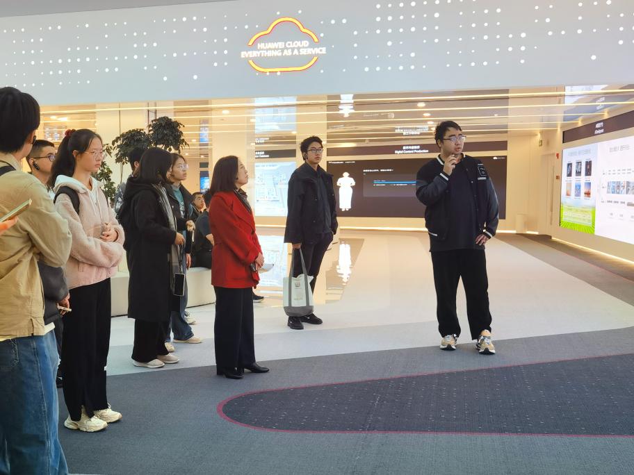 华为北京会展中心是华为在京设立的重要展示平台,共有四大展区和多个展岛,涵盖了华为绝大部分产品线、事业群和业务单元的领先产品和解决方案。通过工作人员的讲解,同学们了解了华为依托数字技术开展的基础设施建设,以及数字技术赋能政府管理、城市运行、学校教育教学等的解决方案;了解了华为在人工智能、虚拟现实、云计算、物联网、5G等领域的前沿技术成果。同学们亦通过体验华为智能云会议室以及一系列性能卓越的电子产品,深刻感受到了科技带来的高效与便捷。