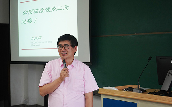 郑风田教授以《如何破除城乡二元结构》为题,为同学们讲述了城乡二元结构背景下的中国发展探索。他从学习领会党的二十大报告精神出发,指出破除城乡二元结构在我国农业农村建设中的重要性。郑风田教授介绍了城乡二元结构的产生背景、现状,梳理了其他国家应对城乡关系的经验,并以政策演变为主线,结合兰考县及我国城乡融合试验区的案例,生动地解读了破除城乡二元结构的中国方法。