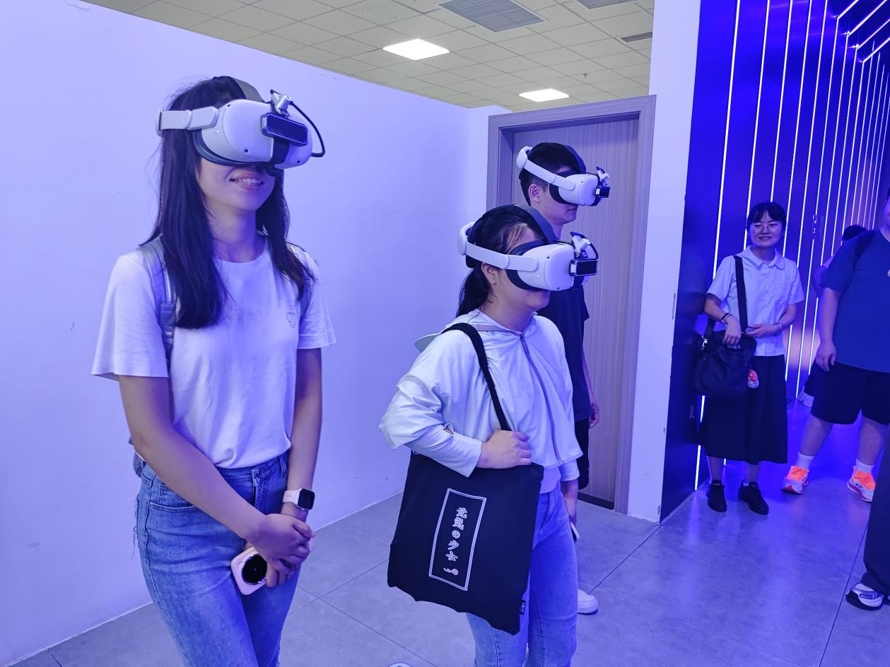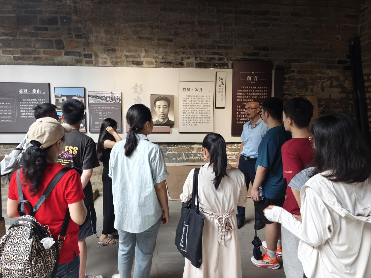 8月19日上午,调研团深入探访了大别山腹地的红色小镇——金寨县汤家汇镇。作为革命精神的熔炉与革命骨干的摇篮,汤家汇镇见证了中国共产党在皖西地区首个党组织——笔架山农校的诞生,素有“一座完整的苏维埃城”的美誉。调研团依次踏访少共豫东南道委 少共赤南县委旧址、豫东南道区苏维埃政府旧址、皖西北特区苏维埃银行、原赤城县邮政局等地,在讲解员的生动讲述下,调研团成员仿佛穿越时空,亲身体会了那段烽火连天的革命岁月,深刻感受到先辈们不屈不挠的斗争精神与开创伟业的壮丽篇章。调研第二站,调研团师生来到十万剧场,戴上VR头盔,感受当代科技与红色故事的巧妙结合。