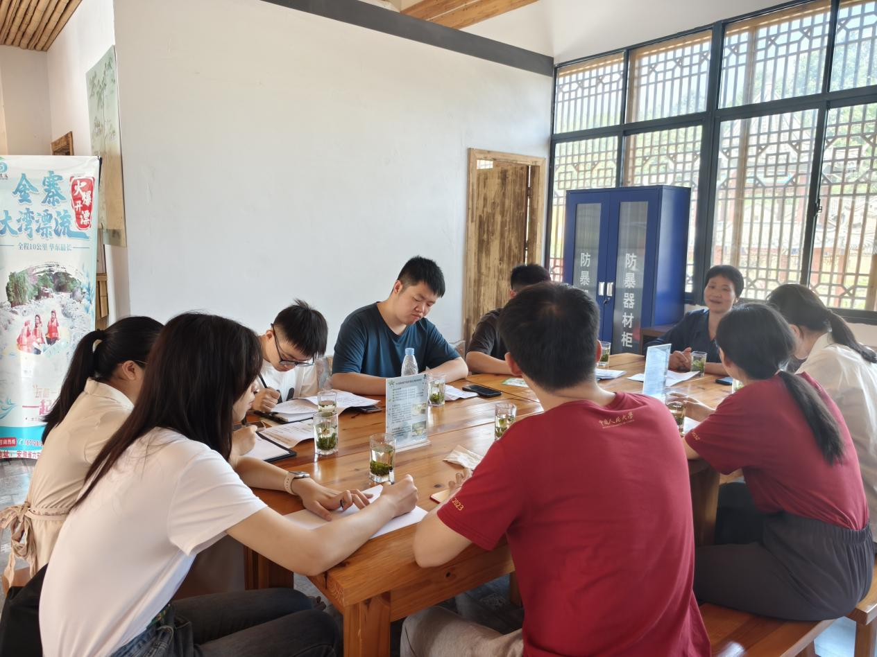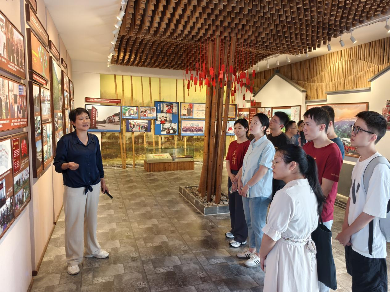 从曾经的贫困落后变成如今的美丽乡村,大湾村的变化离不开大湾村总支书记何家枝的艰辛付出。在大湾村游客接待中心,何家枝深情讲述了大湾村的贫困记忆、总书记的深切关怀、大湾村的小康之路,师生们了解到大湾村的脱贫攻坚的艰难历程与丰硕成果,见证了党对革命老区人民的深切关怀与不懈支持,感受到当地群众对党的由衷感恩与深厚情感。大湾村通过加强党支部建设,筑牢基层战斗堡垒,依托“山上种茶、家中迎客、红绿结合”的创新发展模式,大力发展乡村旅游,实现从昔日贫穷闭塞的“落后村”到今日宜居、宜产、宜游的“明星村”的华丽蝶变。