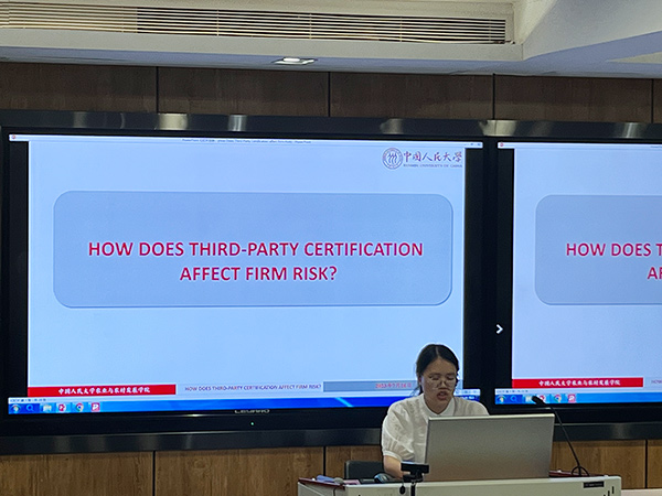 本次大会主题是《数字化供应链与可持续发展》。7月16日下午,硕士生向玉兰参加平行论坛,进行主题为“How does third-party certification affect firm risk?”的汇报,该汇报分析了第三方认证对农业上市公司风险的非线性影响以及纵向一体化和战略激进度在影响机制中的调节作用。