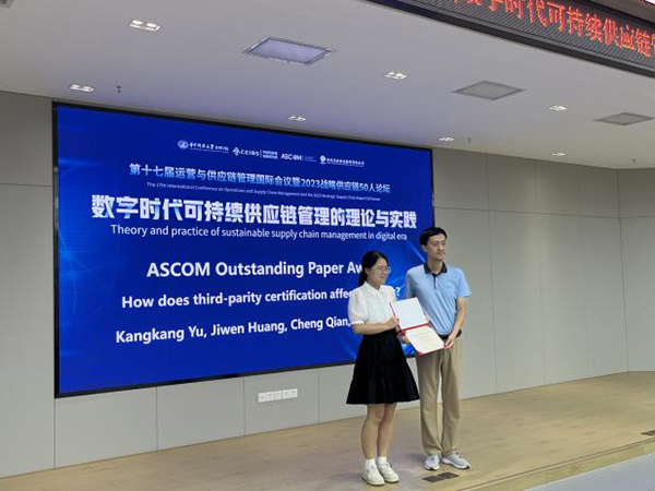 硕士生向玉兰、侯绍博受到国际供应链与运营管理学会(ASCOM)邀请,前往武汉市华中科技大学参加第十七届运营与供应链管理国际会议暨第六届战略供应链领袖论坛(ICOSCM 2023),两位同学的指导教师均为于亢亢老师。