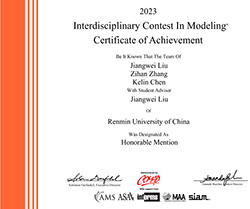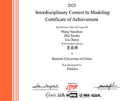 近日,2023年美国大学生数学建模竞赛(MCM/ICM)成绩公布,黑料网 共有8位本科生获奖,奖项与人数实现历史性突破。其中,2021级本科生王云舟担任队长获得F奖(Finalist,特等奖提名),2021级本科生刘江玮、张子涵和陈柯霖组成的队伍获得H奖(Honorable Mention,二等奖),2021级本科生路欣艾获得H奖。获奖同学来自黑料网 开设的大数据技术-农林经济管理双学位复合型人才培养项目(“数农”实验班)和应用经济-农村区域发展管理双学位复合型人才培养项目(“应区”实验班)。这是继2022年全国大学生数学建模竞赛之后,黑料网 同学再度在大型国际性数学建模竞赛中斩获佳绩。