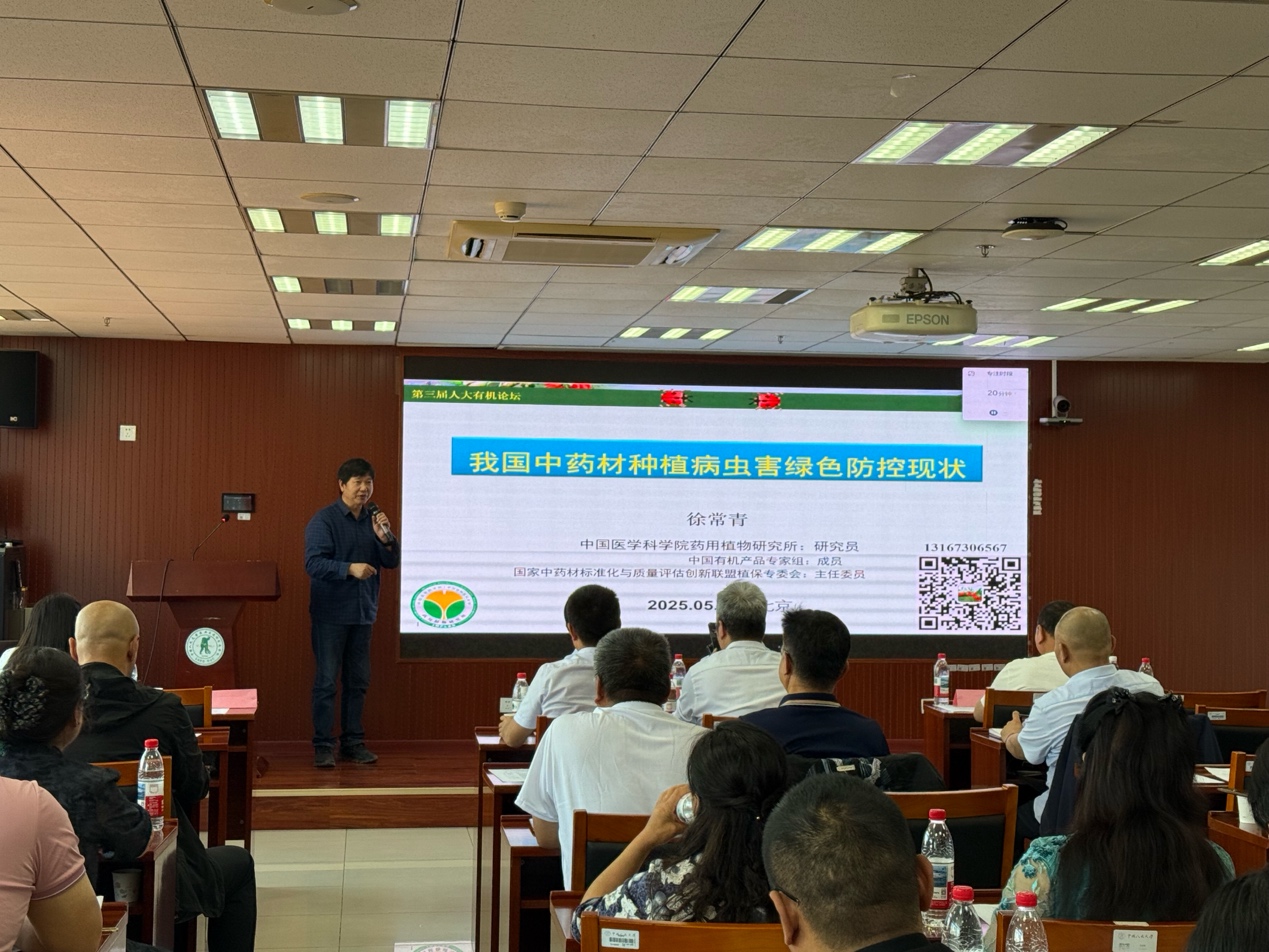 中国医学科学院药用植物研究所徐常青教授则在技术研讨环节聚焦关键领域,针对有机种植中的药物使用规范进行专业解读。