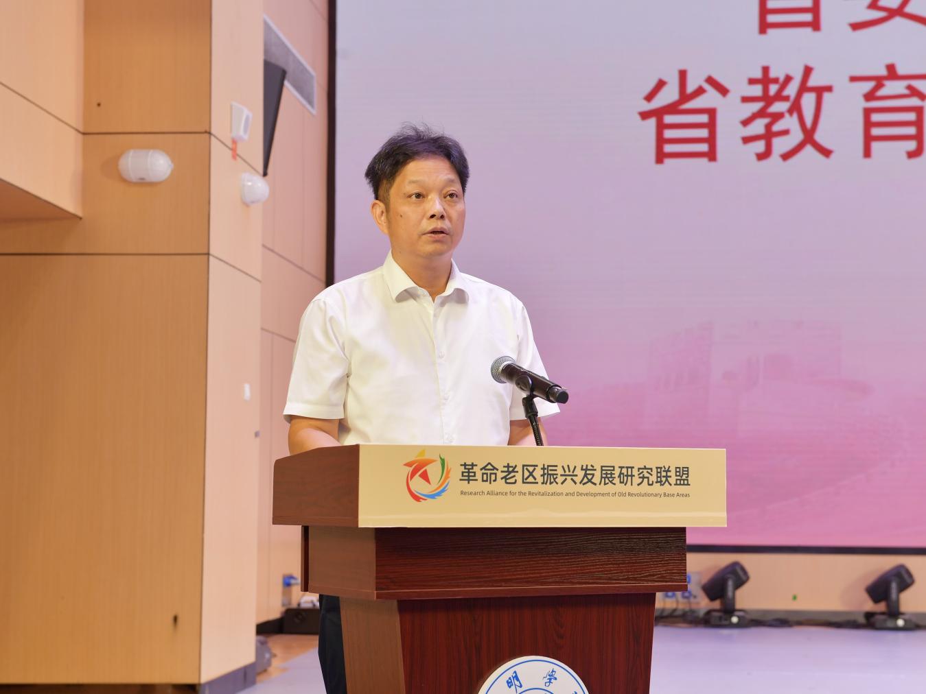 福建省委教育工委副书记、省教育厅副厅长陈洪尧表示,省教育工委将积极支持联盟建设,推动高校跨区域协同与资源整合,促进研究成果转化应用。希望联盟坚持正确政治方向,深化对习近平新时代中国特色社会主义思想的学习阐释;坚持问题导向,围绕老区高质量发展和民生改善开展实地调研,打造国家级智库;用好红色资源,加强革命文物保护和红色文化传承,助力长征国家文化公园建设,为革命老区全面振兴和中国式现代化贡献智慧与力量。